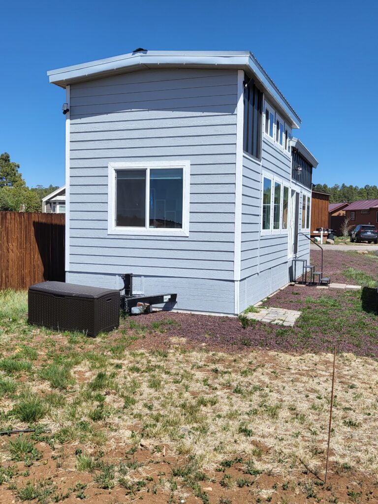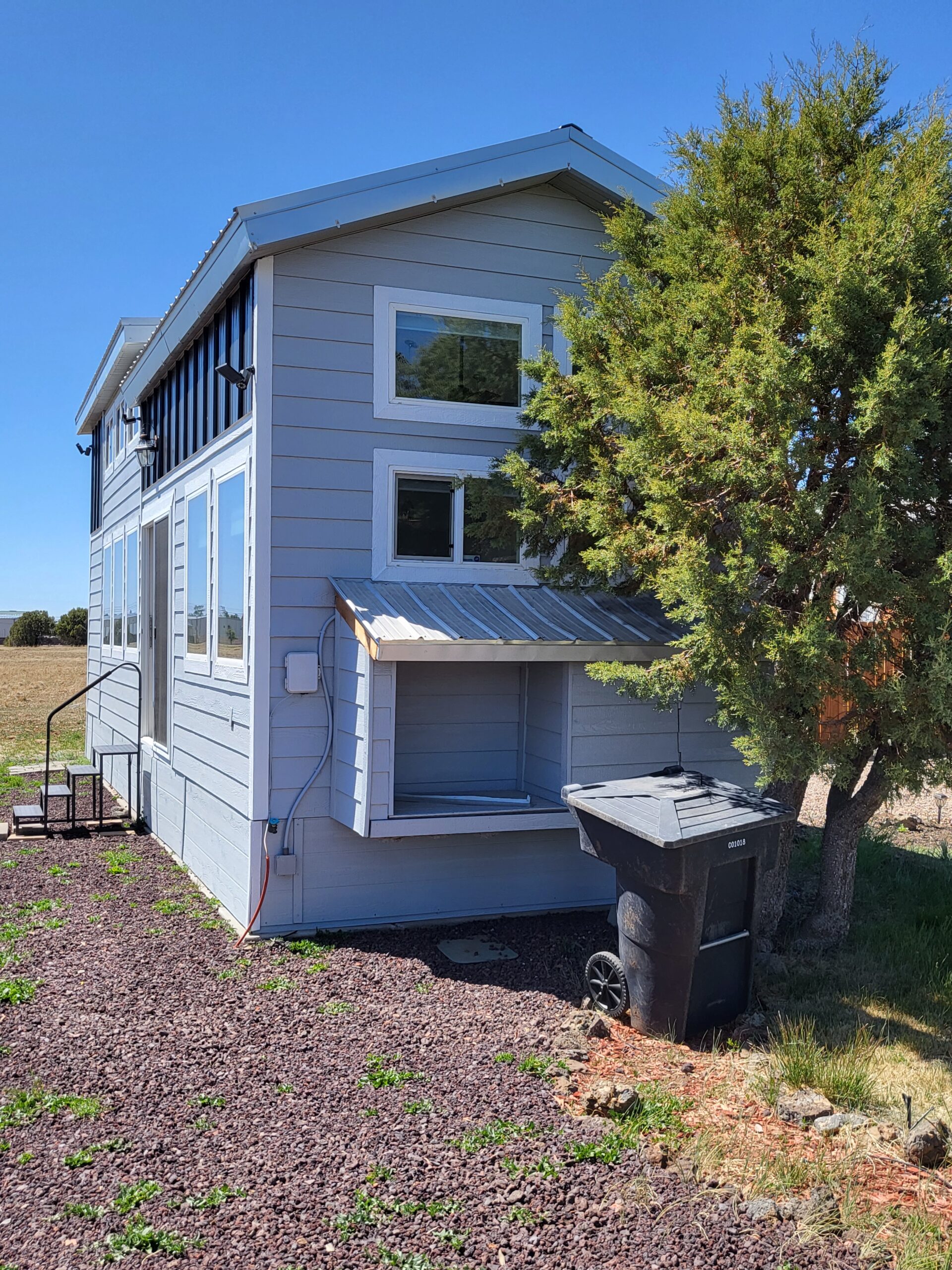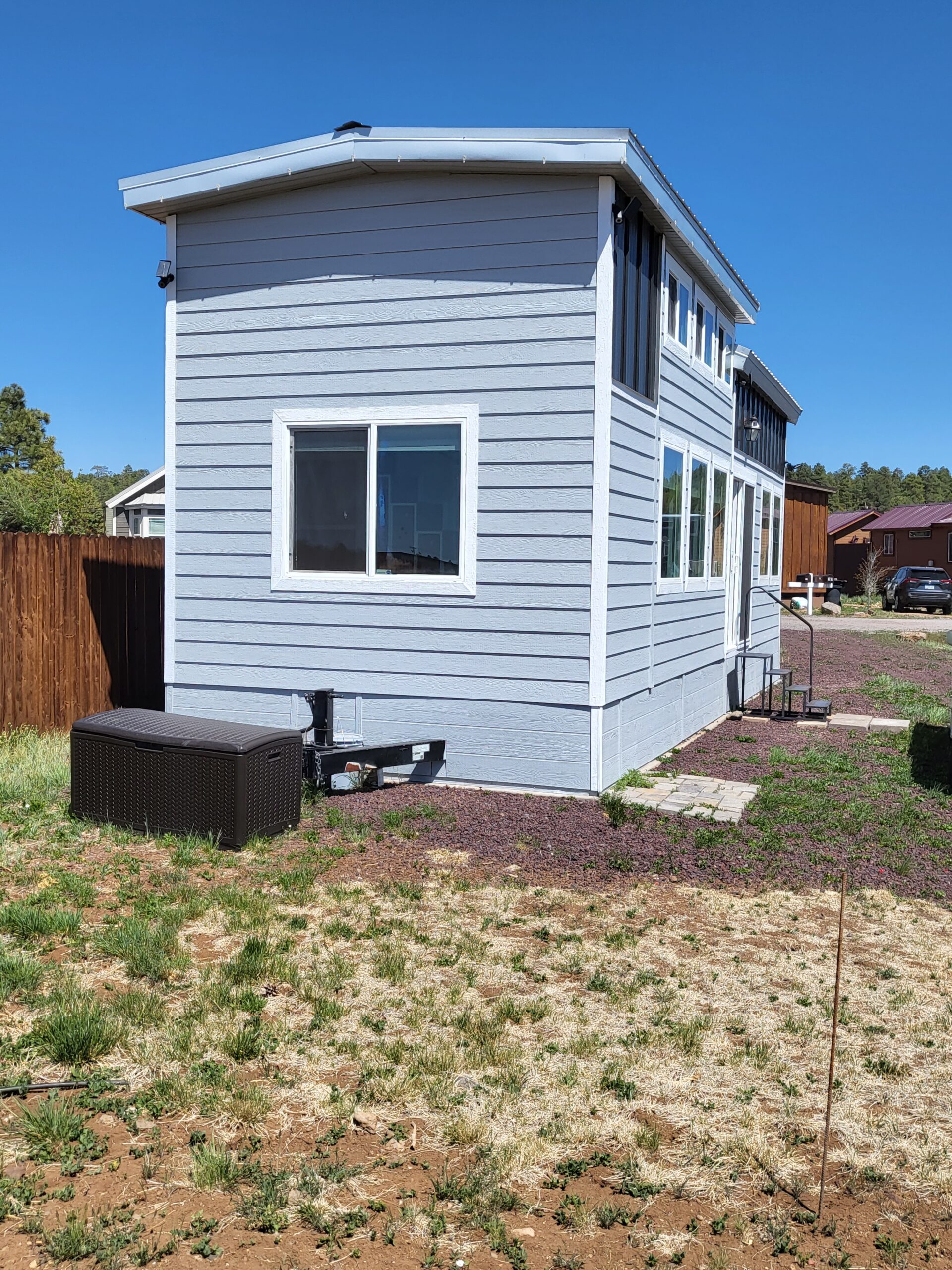 Tiny House located in the Lux Tiny Community of Lakeside-Pinetop Arizona. In the White Mountains, elevation approx. 6500 feet. Includes a 200 Sq ft Loft. Built on a Trailer Made 4 axle trailer. Currently leveled and anchored on cement. Could be moved. Comes with a W/D Combo, Fridge, & Range. New Interior & Exterior Paint. Metal Roof, Spray Foam Insulation, New Water Heater, JELD-WEN Sliding Door with Mini Blinds, Laminate floor no carpet. Space Rent is $399. per month. Includes Water, Sewer & Garbage. Move in Ready.